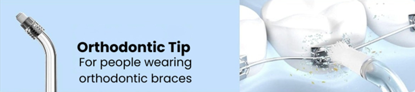 • The orthodontic tip features a tapered brush designed to clean around braces, bridges, and dental work—removing plaque and food debris where flossing is difficult. It supports better gum health and helps prevent gingivitis during orthodontic treatment.