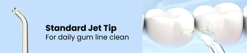 • The standard clear nozzle is ideal for daily cleaning, effectively removing debris between teeth and along the gumline. Perfect for routine oral hygiene.