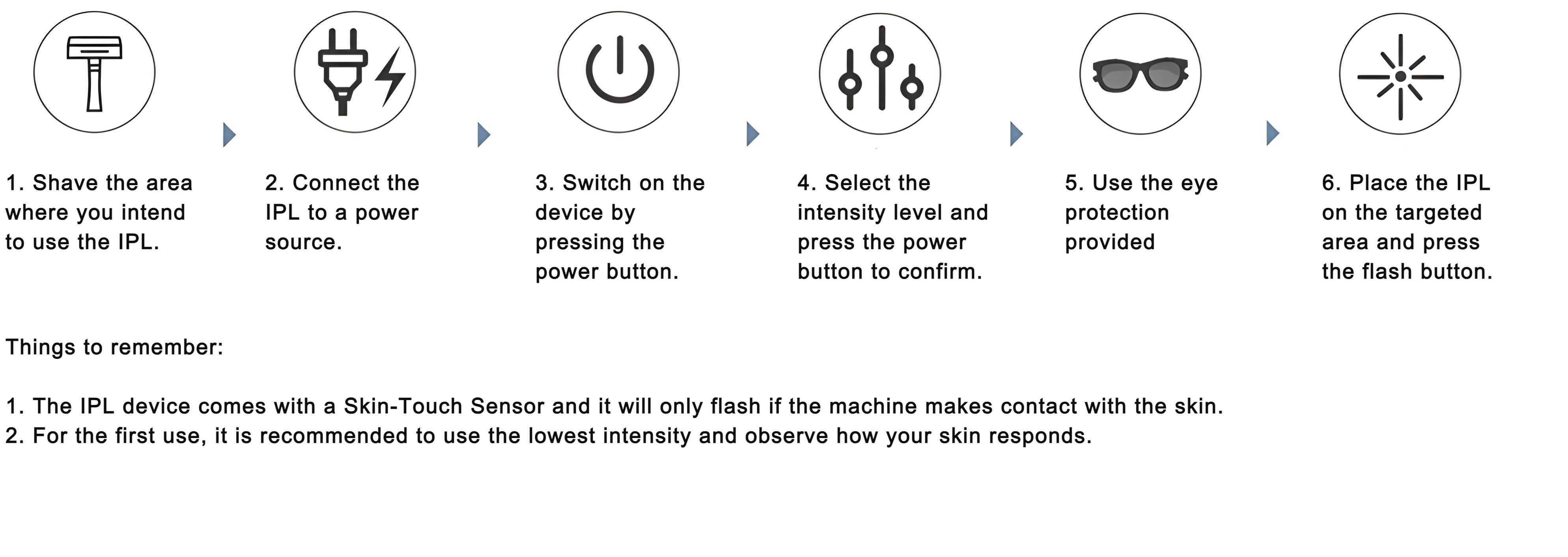 Simply plug in, turn it on, set up the preferred intensity (we recommend starting with low intensity) and proceed to a fabulous hair free skin.